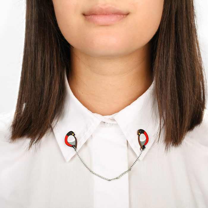 Ни один стиляга не будет выглядеть современно без искусно подобранных украшений, которые завершат его образ! Бижутерия — это современная недорогая альтернатива изделиям из золота и прочих драгоценных металлов. Значки на воротничок с цепочкой "Снегири" — это то, что добавит вам шарма!