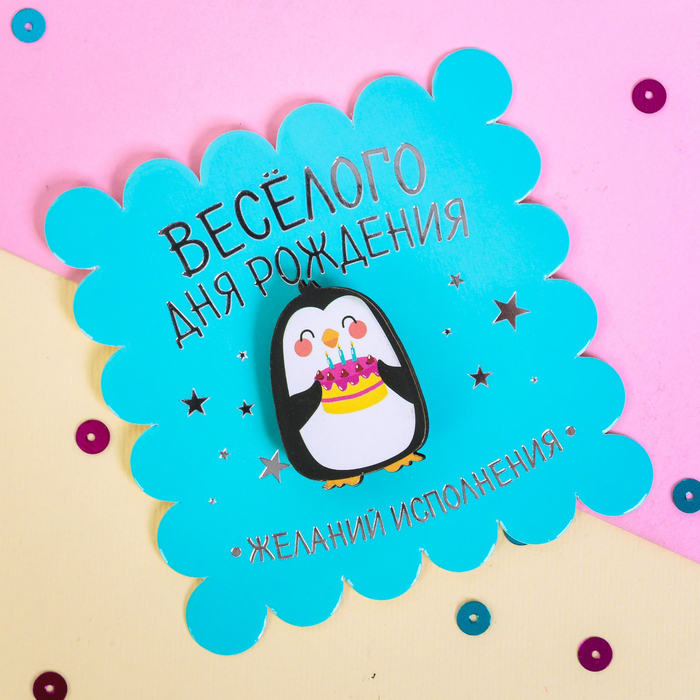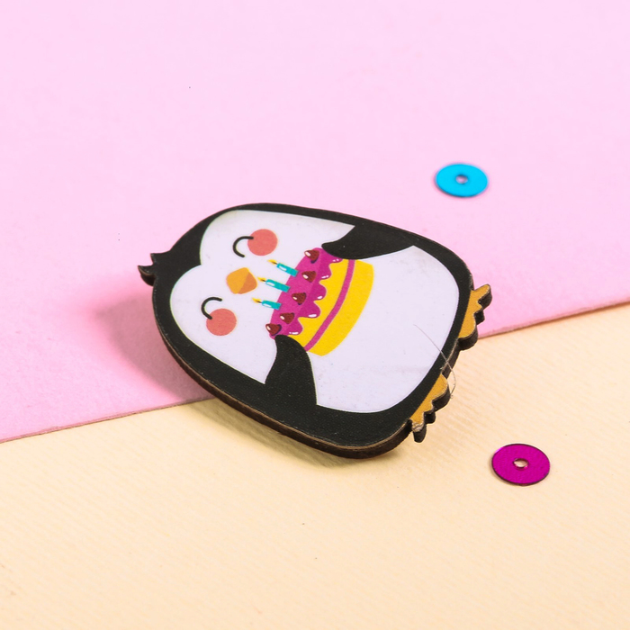 Значок деревянный в конверте "Пингвин"