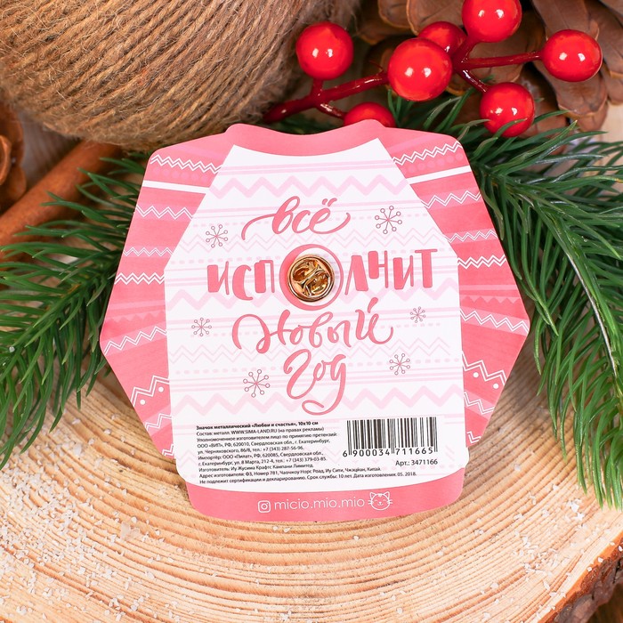 Ни один стиляга не будет выглядеть современно без искусно подобранных украшений, которые завершат его образ! Бижутерия — это современная недорогая альтернатива изделиям из золота и прочих драгоценных металлов. Значок металлический "Любви и счастья" — это то, что добавит вам шарма!