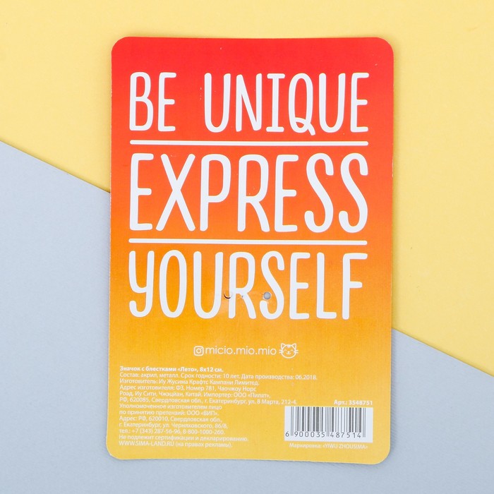 Ни один стиляга не будет выглядеть современно без искусно подобранных украшений, которые завершат его образ! Бижутерия — это современная недорогая альтернатива изделиям из золота и прочих драгоценных металлов. Значок с блёстками "Лето" — это то, что добавит вам шарма!