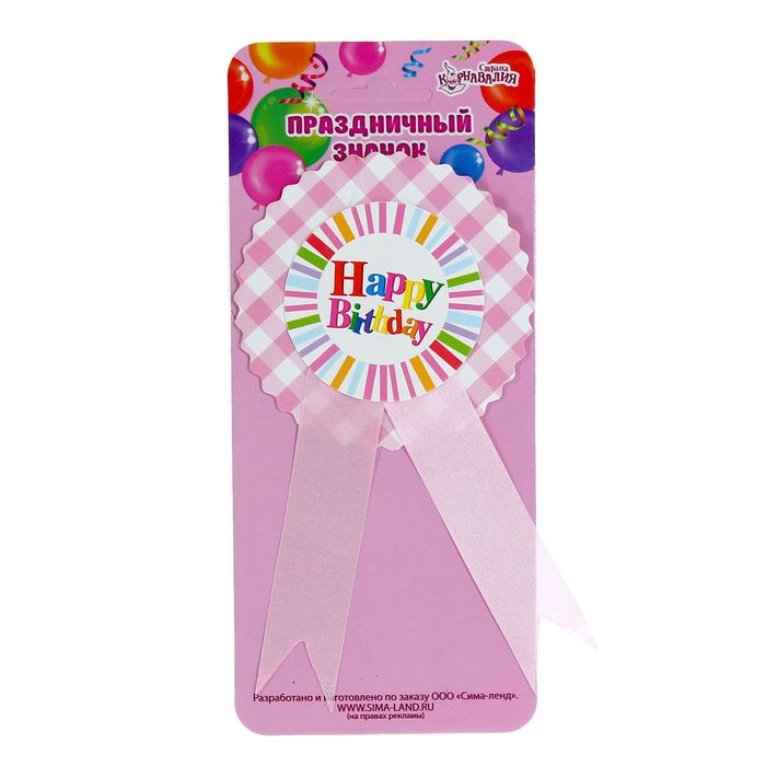 Значок "С Днем рождения" полосочки, розовый цвет