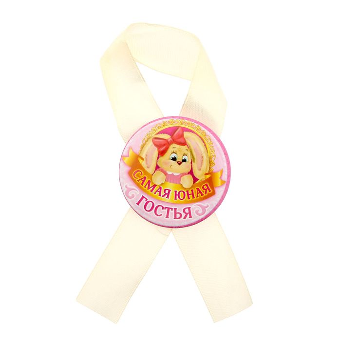 Значок с лентой "Самая юная гостья" — отличный способ порадовать близких. Сувенир изготовлен из лёгкого пластика и декорирован яркой текстильной лентой шириной 1,5 см. Изделие дополнено булавкой на оборотной стороне, так что его сразу можно надеть на счастливого получателя. Награда обязательно придётся по вкусу тому, кто любит быть в центре внимания.