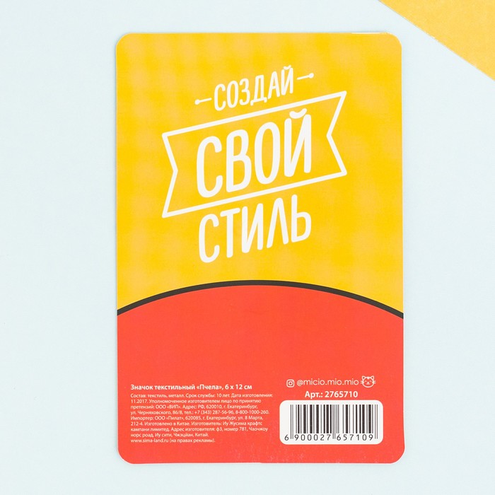 Ни один стиляга не будет выглядеть современно без искусно подобранных украшений, которые завершат его образ! Бижутерия — это современная недорогая альтернатива изделиям из золота и прочих драгоценных металлов. Значок текстильный "Пчела" — это то, что добавит вам шарма!