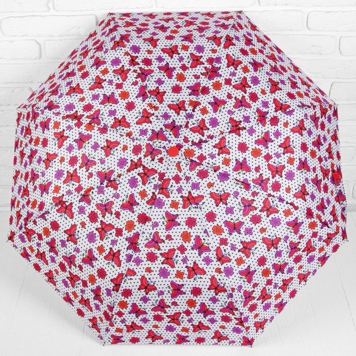 Зонт автоматический "Цветы", R=50см, цвет красный