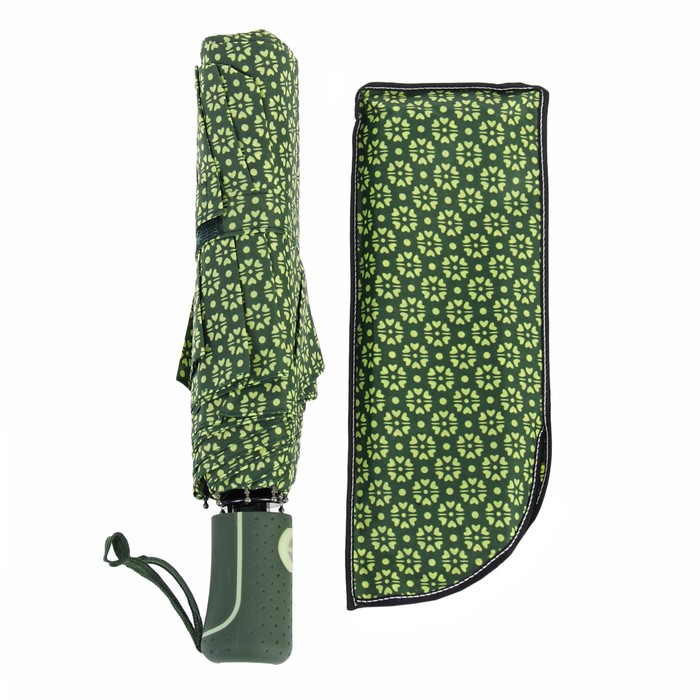 Зонт автоматический "Цветы", R=55см, цвет зелёный