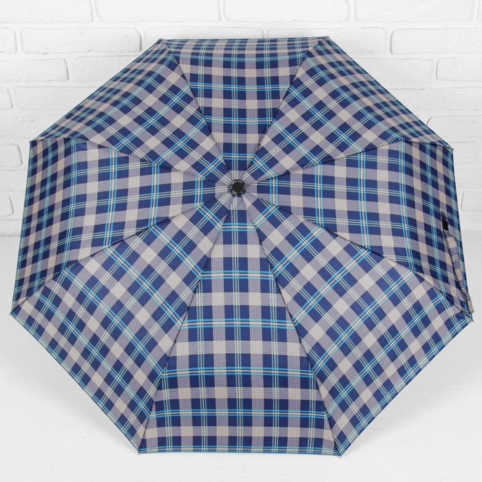 Зонт автоматический "Клетка", R=49см, цвет синий/голубой