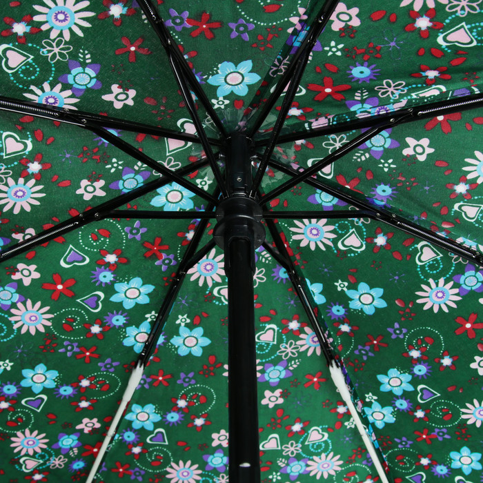 Зонт автоматический "Сердца и бабочки", R=49см, цвет зелёный