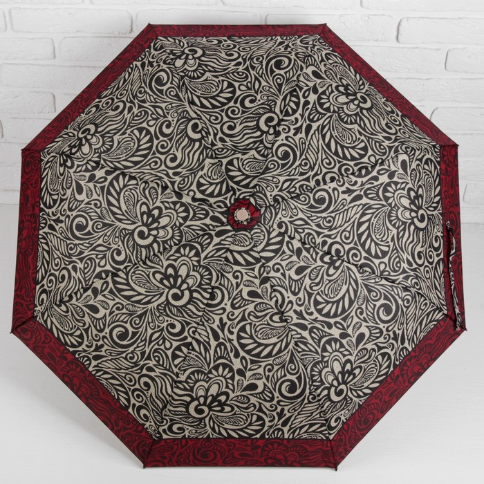 Зонт автоматический "Завитки", R=48см, цвет серый/бордовый