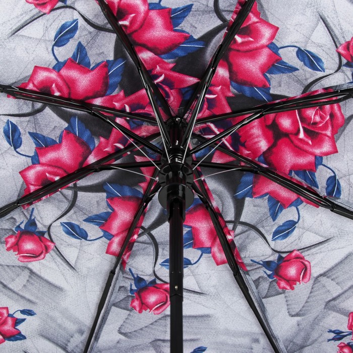 Зонт полуавтоматический "Цветы Розы", R=49см, цвет серый/розовый