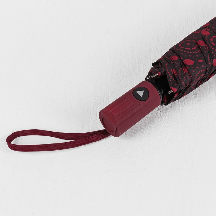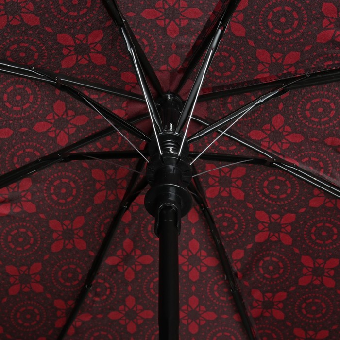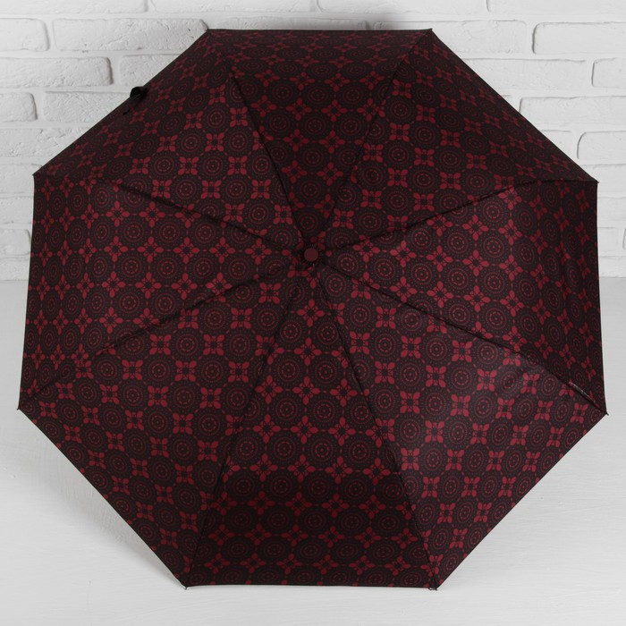Зонт полуавтоматический "Узор", R=49см, цвет чёрный/бордовый