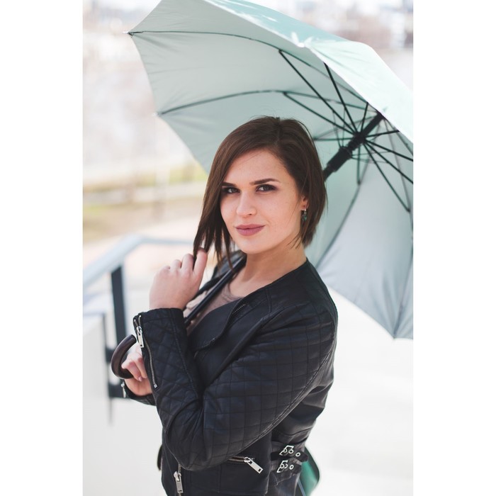 Элегантный зонт-трость сохранит вашу причёску и макияж. Благодаря широкому и прочному куполу он обеспечит наилучшую защиту от непогоды.