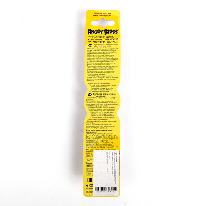 Зубная щётка детская Longa Vita TWA-2 Angry Birds, музыкальная, от 3-х лет, синяя