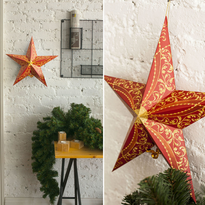 Звезда "С Новым годом!" (Красно-золотая), 45 х 45 х 16 см