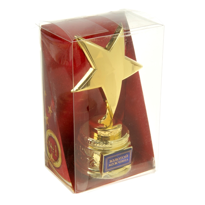 Все достижения обязательно должны быть отмечены наградой. Звезда "Золотой мужчина" прекрасно подойдет для наград на семейных праздниках. Он изготовлен из металла под золото. На основании награды имеется вставка, на которой написаны достижения награждаемого. Кубок упакован в фирменную подарочную коробку.